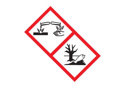 Kann gegenüber Metallen korrosiv sein. Verursacht schwere Verätzungen der Haut und schwere Augenschäden. Sehr giftig für Wasserorganismen mit langfristiger Wirkung. Ist ärztlicher Rat erforderlich, Verpackung oder Kennzeichnungsetikett bereithalten. Darf nicht in die Hände von Kindern gelangen. Rauch/Gas/Nebel/Dampf/Aerosol nicht einatmen. Freisetzung in die Umwelt vermeiden. Schutzhandschuhe/Schutzkleidung/Augenschutz/Gesichtsschutz tragen. BEI KONTAKT MIT DEN AUGEN: Einige Minuten lang behutsam mit Wasser spülen. Eventuell vorhandene Kontaktlinsen nach Möglichkeit entfernen. Weiter spülen. Inhalt/Behälter der Entsorgung als gefährlichen Abfall zuführen. Entwickelt bei Berührung mit Säure giftige Gase. Achtung! Nicht zusammen mit anderen Produkten verwenden, da gefährliche Gase (Chlor) freigesetzt werden können. enthält Natriumhypochlorit 130 g/1 kg in Lösung, EINECS 231-668-3, Registriernummer: N-20808