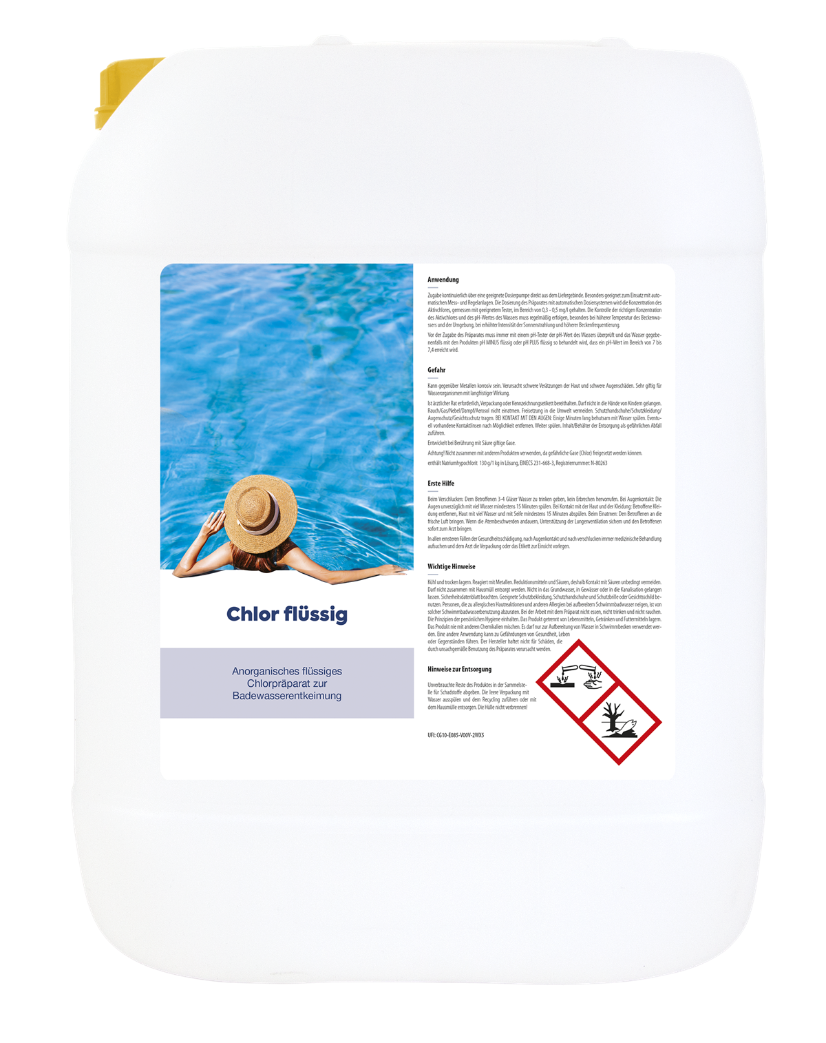 Chlor flüssig (Biozid) für die Desinfektion und Entfernung von Bakterien und Keime im Poolwasser.