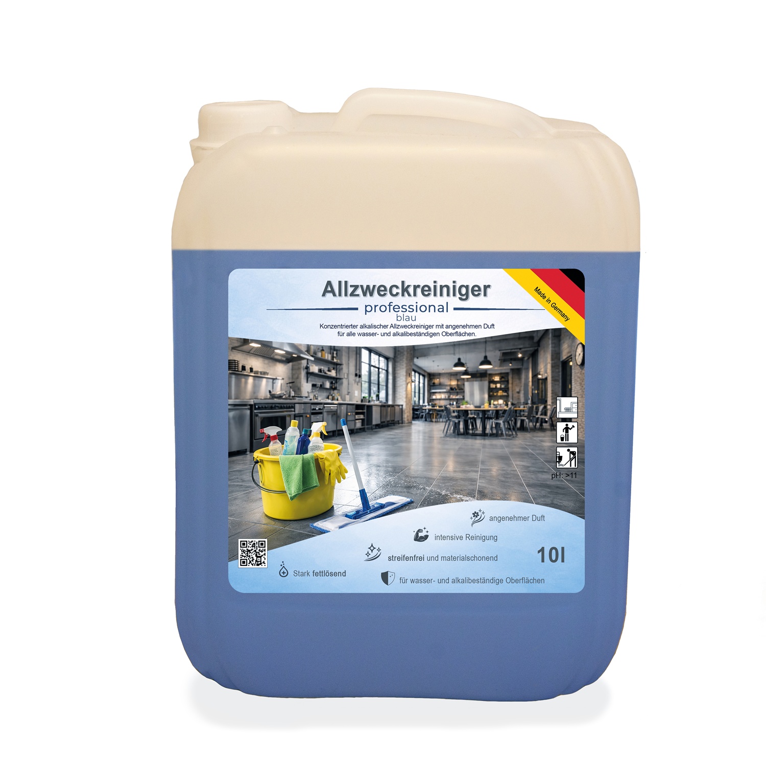 Allzweckreiniger Professional Blau – Maximale Fettlösekraft & Frische. Der Allzweckreiniger Professional Blau ist die kraftvolle Lösung für die tägliche und intensive Reinigung. Dieser hochkonzentrierte, alkalische Reiniger wurde speziell für Profi-Ansprüche entwickelt und kombiniert eine starke Reinigungsleistung mit einem langanhaltenden, angenehmen Duft.