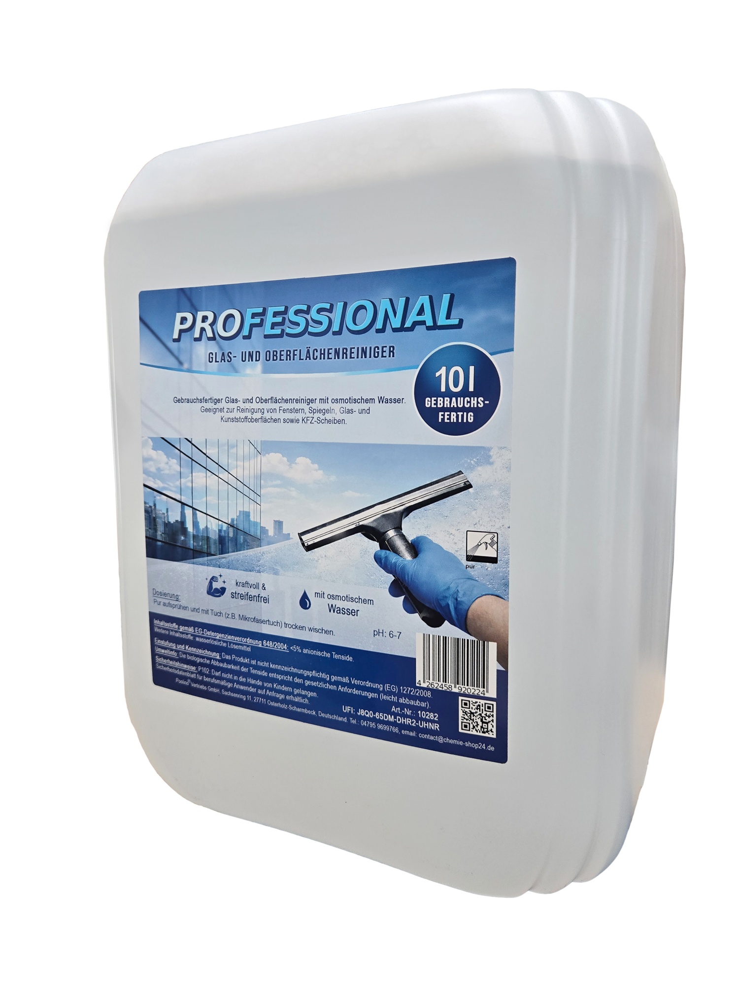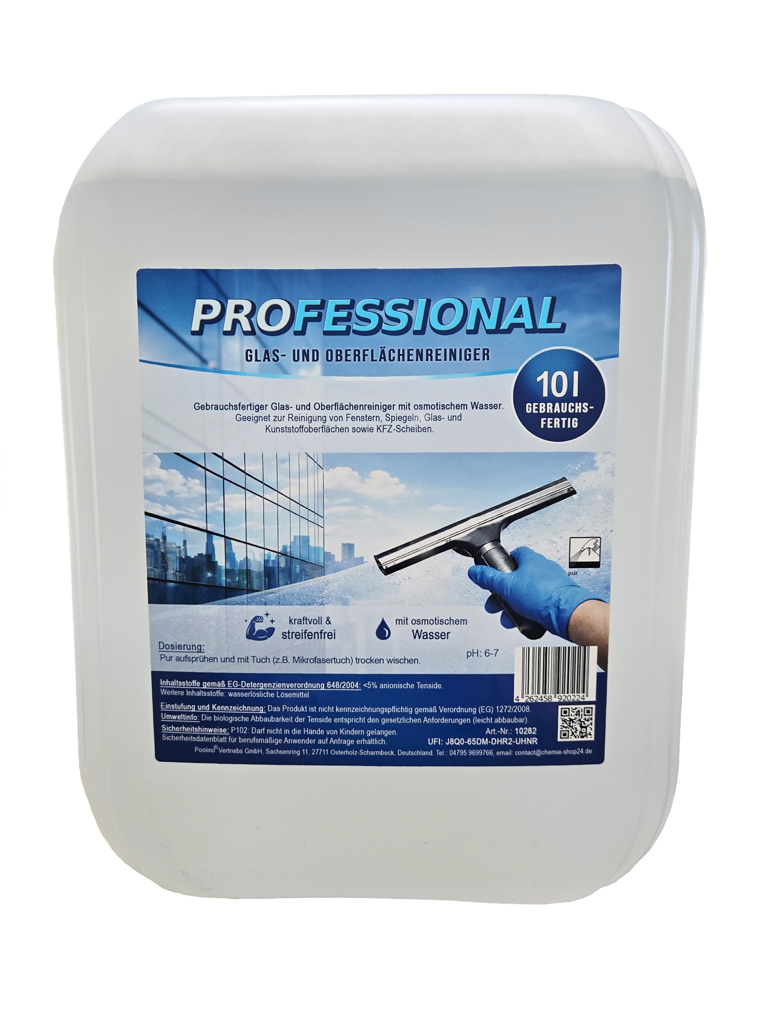 Produktinformationen "60x Professional Glasreiniger mit Osmosewasser 10 Liter Oberflächenreiniger streifenfrei 1 Palette"