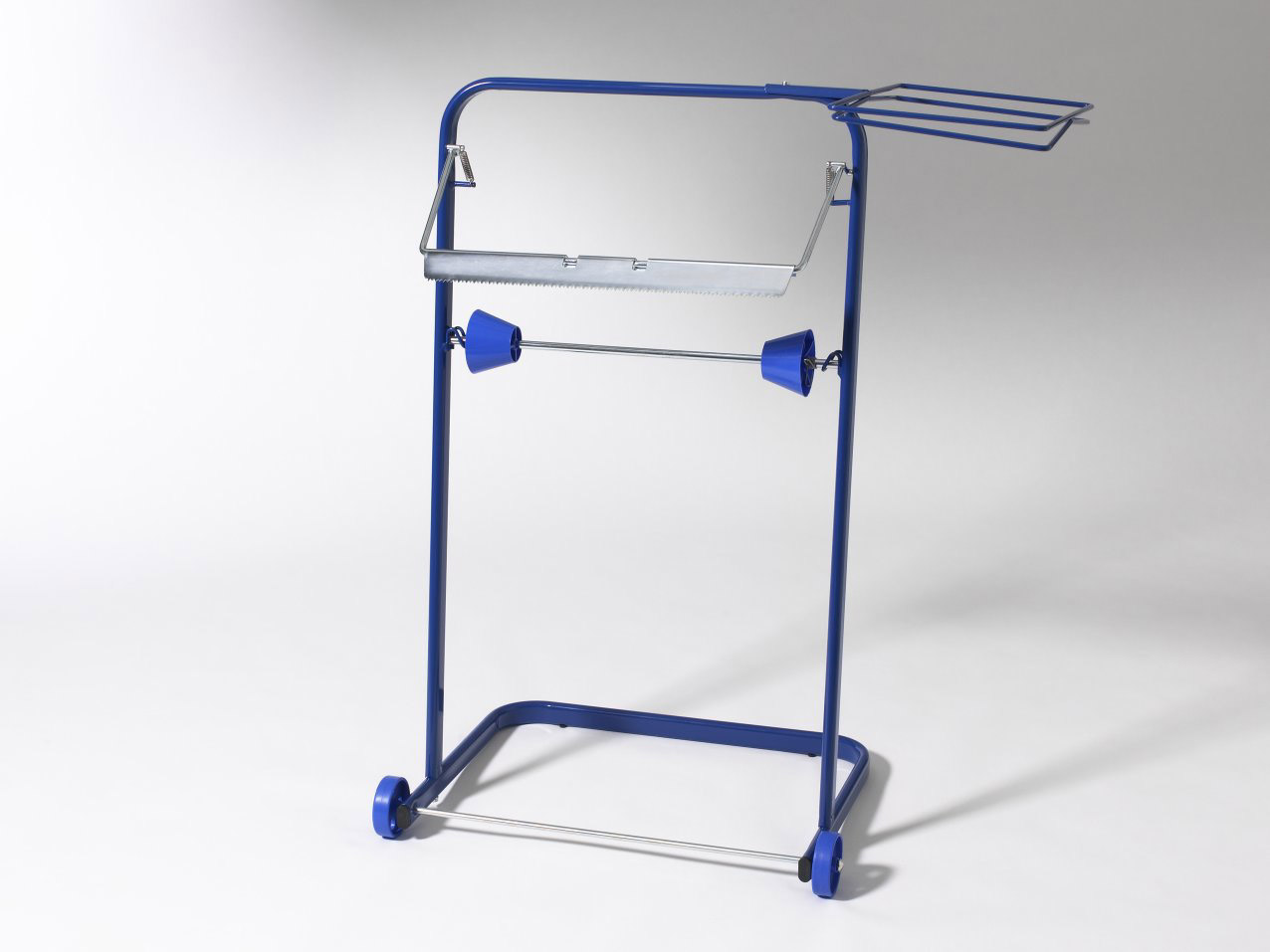 Fripa Bodenständer Putztuchrolle aus Metall mit Müllsack-Halterung, für Rollen bis 40 cm Breite, blau lackiert.