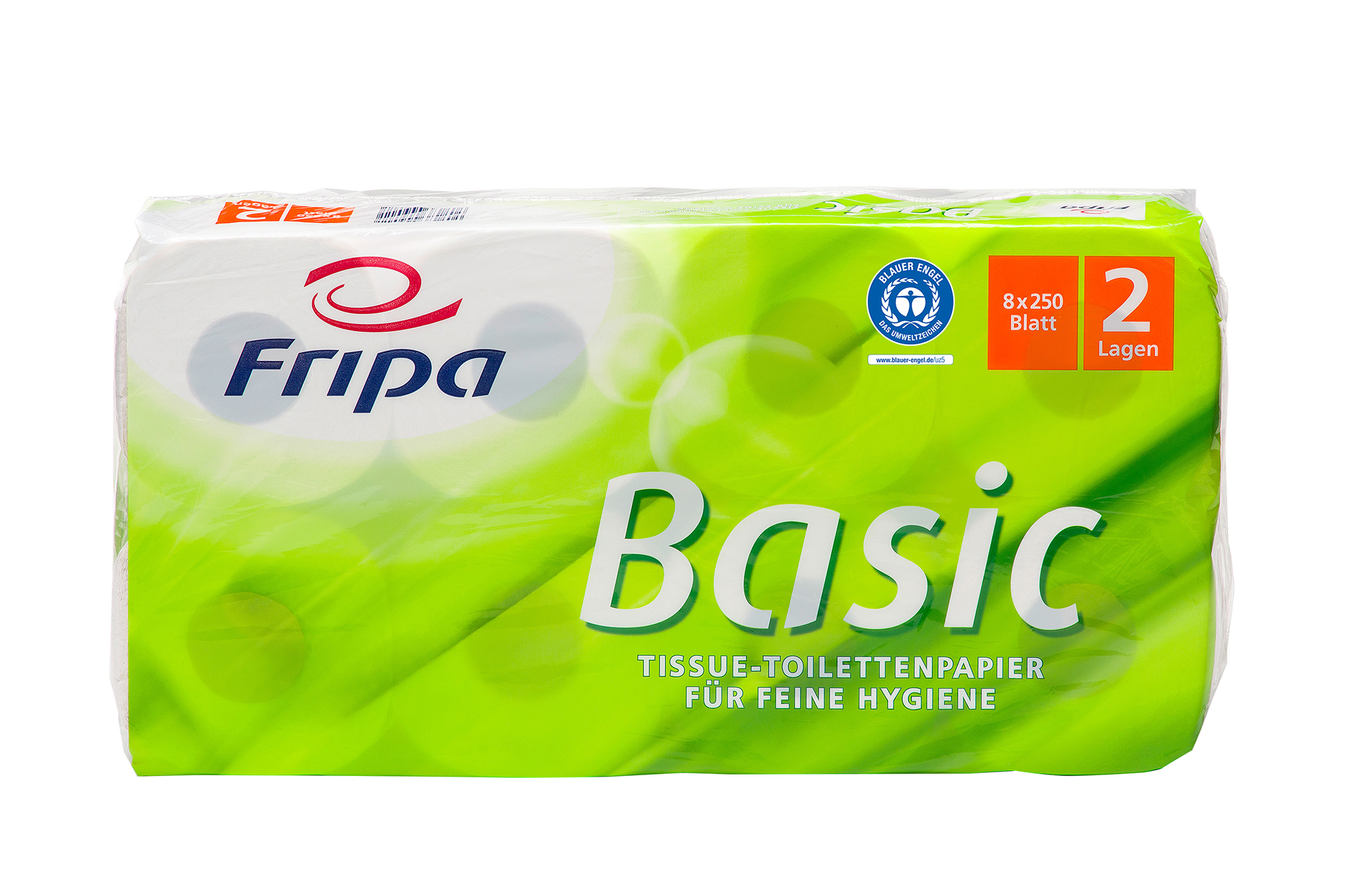 Fripa Toilettenpapier Basic, Recyclingqualität nach RAL UZ 5, 2 lagig. Geeignet für den Einsatz in jeder Art von öffentlichen Waschräumen. Insbesondere empfohlen für den Einsatz in Gastronomie, Hotellerie, Fitnessstudios, Campingplätze und öffentlichen Einrichtungen. Das helle Recycling-Tissue Fripa Basic erfüllt hohe Ansprüche an Komfort und Stabilität. Dieses Toilettenpapier aus 100 % Altpapier verschafft nicht nur ein gutes Gewissen,