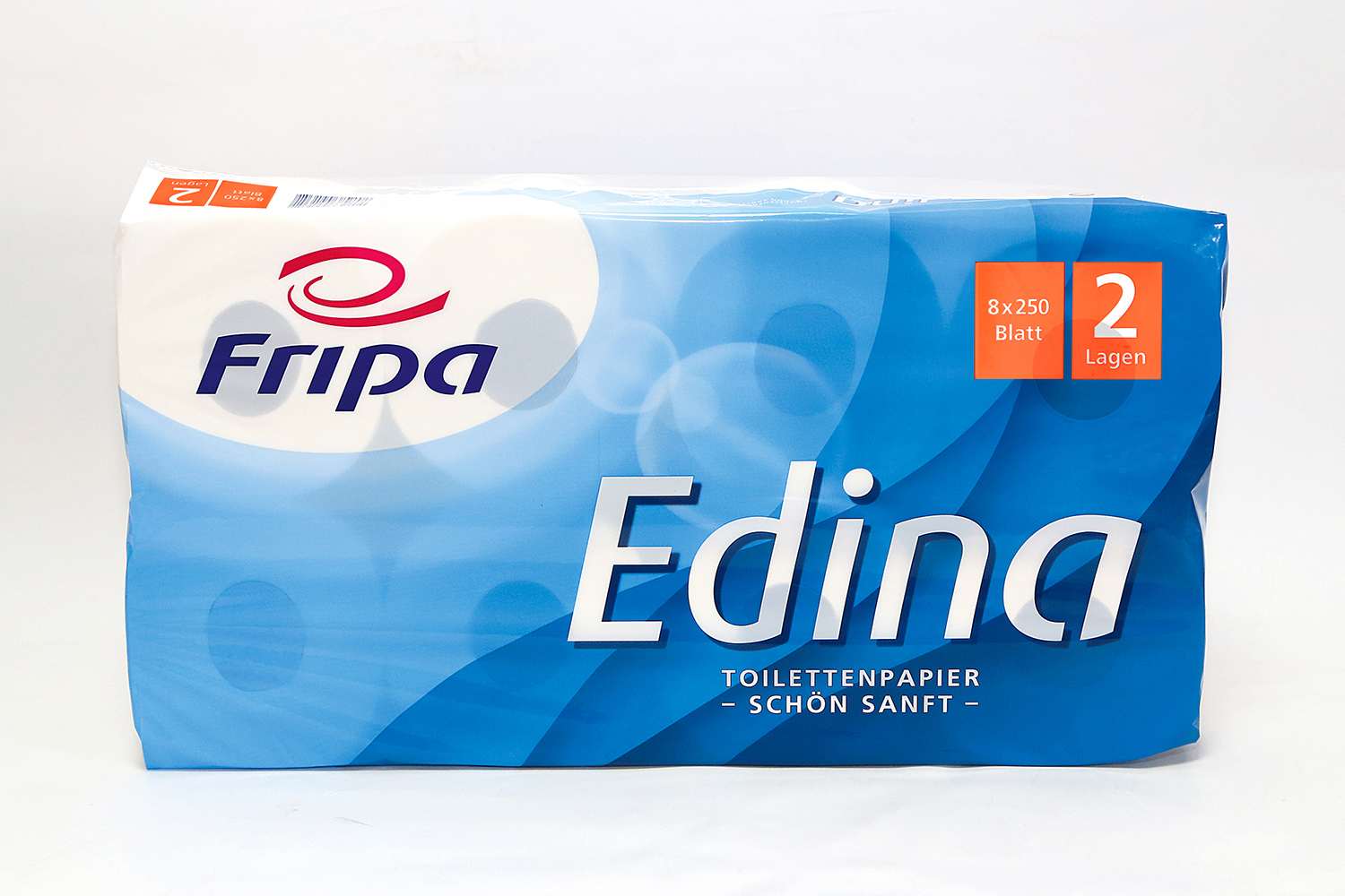 Fripa Toilettenpapier Edina, hochweißes Tissue mit Dekorprägung, 2 lagig mit 250 Blatt pro Rolle.