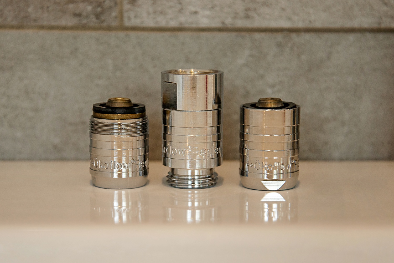 Clever bis zu 40% Wasser sparen mit unserem ökoflow® Wassermengenregler mit integriertem Strahlregler für Waschbecken und Duscharmaturen, sowie Verringerung der Legionellen-Entwicklung.